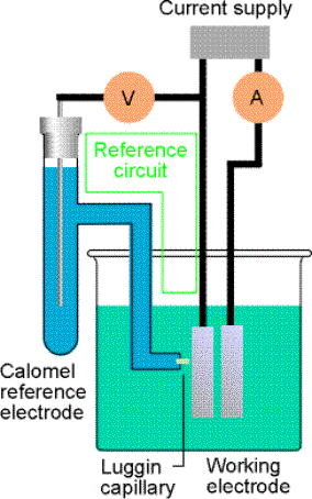 saturated calomel electrode, SCE, (which is more commonly used as a reference