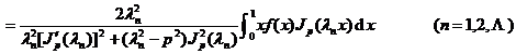 2 o If the function is piecewise differentiable on [0, 1] (with at most a finite number of discontinuities of the first kind), then its Fourier - Bessel series of the second kind converges on 0 < x < 1 , and Equal at continuous points and equal at discontinuous points ;![]()